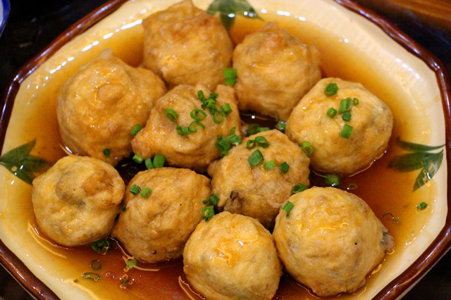 南雄酿豆腐是圆形的,里料较之珠三角地区及河源、梅州等客家菜里的酿豆腐多了一份清香,不油腻。咀嚼以甘甜返口,回味无穷。